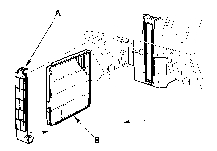 4. Remove the filter lid (A) from the evaporator, then pull out the dust and pollen filter (B).