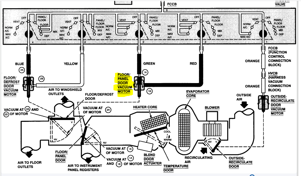I attached a vacuum schematic below and highlighted the actuator in question. Let me know if you can control the other airflow directions so I know which way to go.