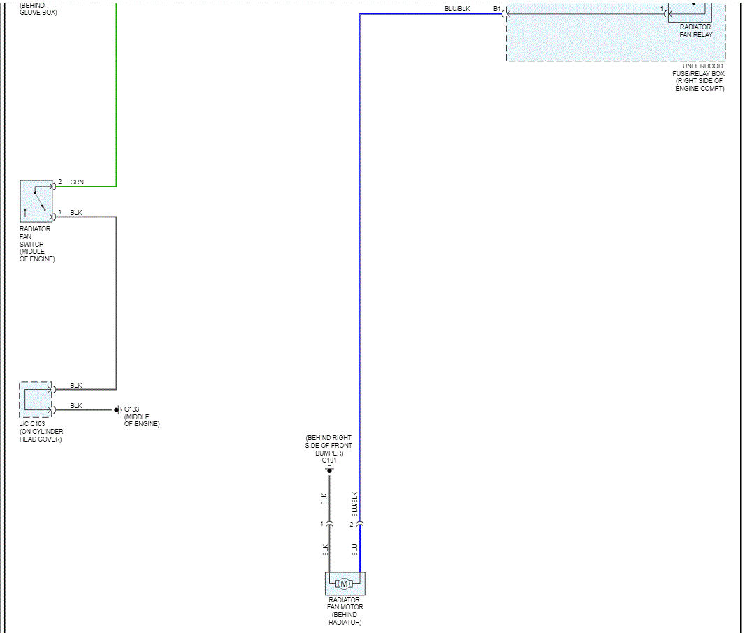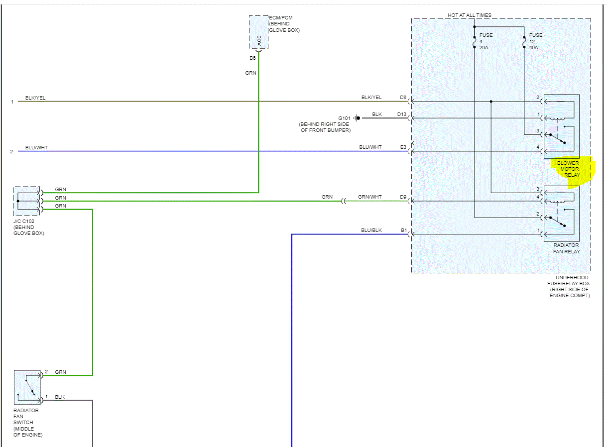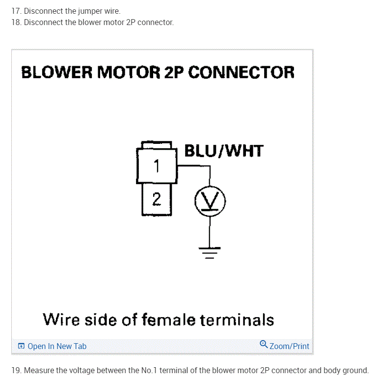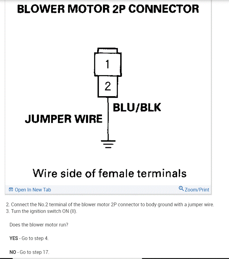 Now, if you supplied 12v to the blue/white wire and ground to the blue/black wire, the fan should run full speed. Is that happening?