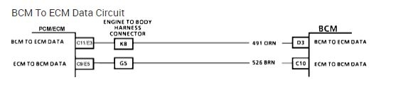 PCM/ECM to BCM data malfunction (CKT 526). If the BCM fails to receive data from the PCM/ECM, pin C9, over CKT 526, code F32 will be set immediately and the BCM will stop sending data to the PCM/ECM over CKT 491. When the PCM/ECM stops receiving data over CKT 491 it will set a code E47 in its memory, however, this code cannot be displayed since it would have to be sent over CKT 526 to the BCM. The loss of data to the BCM will result in a faulty instantaneous fuel economy reading of 0 mpg at all times.