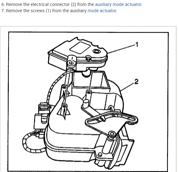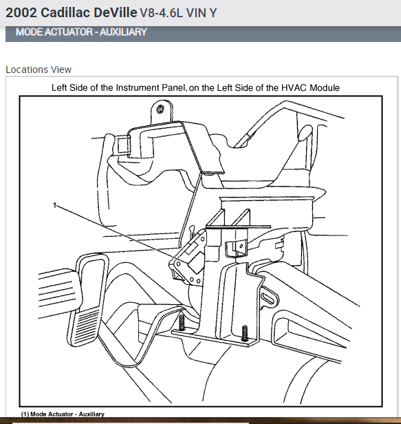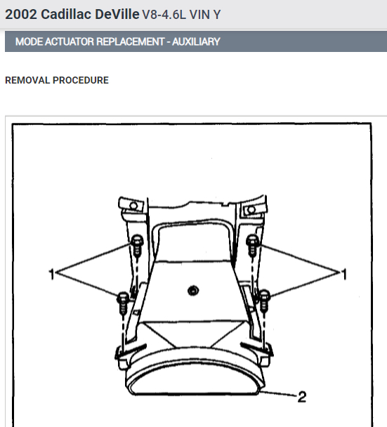I've attached picture steps below on how to replace the auxiliary mode actuator on your Cadillac. Hope this helps and thanks for using 2CarPros.