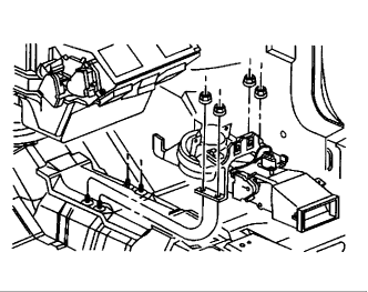 Remove the rear blower motor retaining bracket nuts.