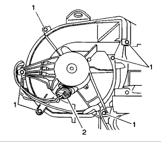 Remove the blower motor retaining screws (1).