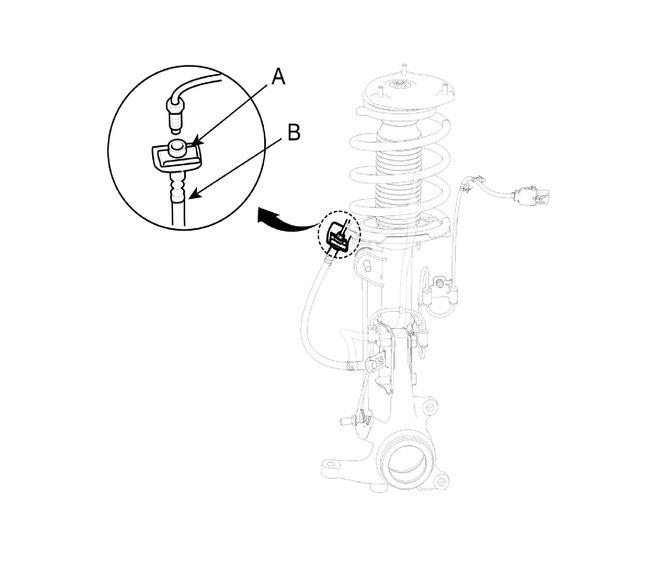 2. Remove the brake hose clip (A), and then remove the brake hose (B).