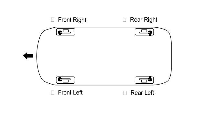 4. Repeat the procedure for each wheel in the sequence shown below until air bubbles no longer appear in the fluid.