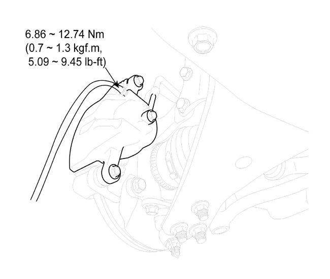 3. Loosen the right-rear brake bleed screw to allow air to escape from the system. Then tighten the bleed screw securely.