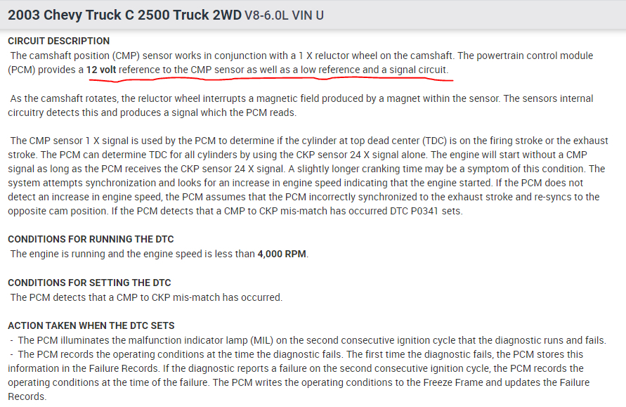 Basically it needs 12 volts to power the sensor and then it will send the proper camshaft position to the ECM so that it knows where the cam is at all times.