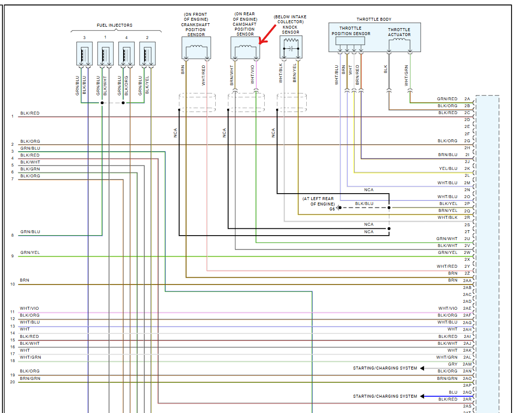 Camshaft position sensor wires lost I don't know where to find them I need to know when they come from the ECU what color they are and then to the camshaft position sensor.