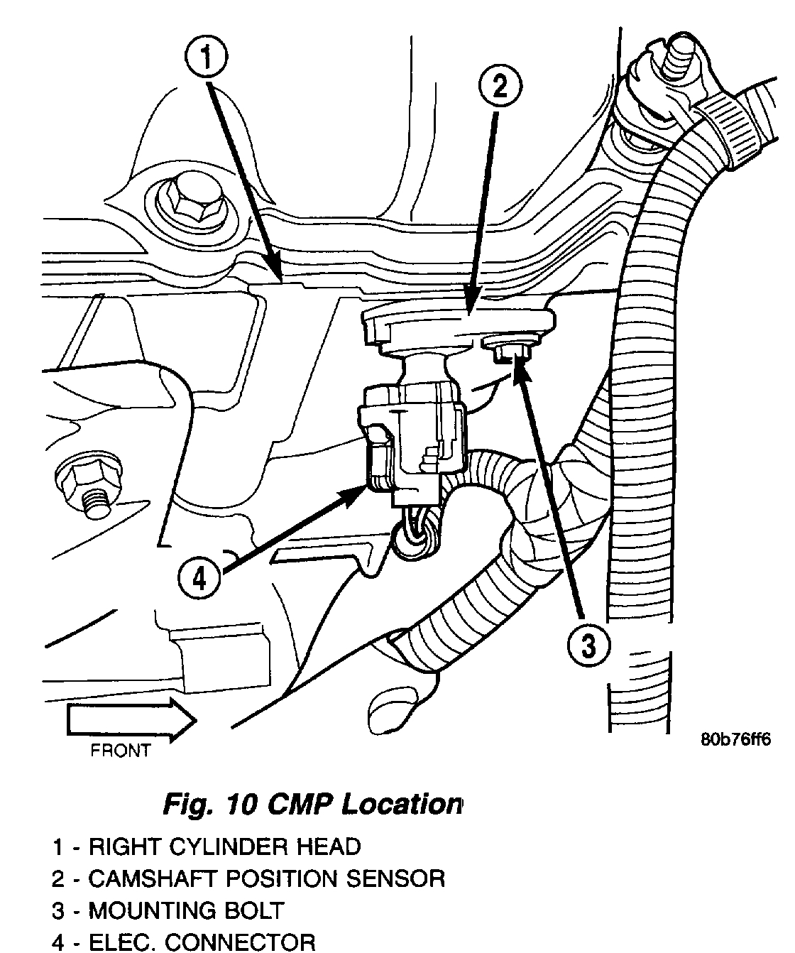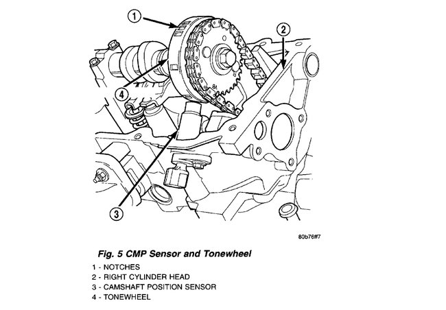 10. Ensure ignition is off. Ensure CMP sensor connector is still disconnected. Remove CMP sensor. See Fig. 28 or Fig. 29Â. Inspect tone wheel/flexplate for physical damage. Ensure tone wheel/flexplate rotates when