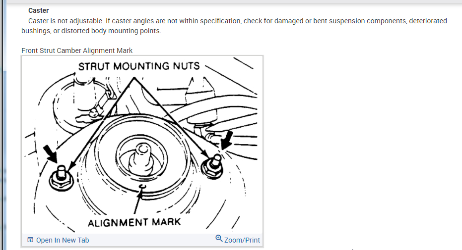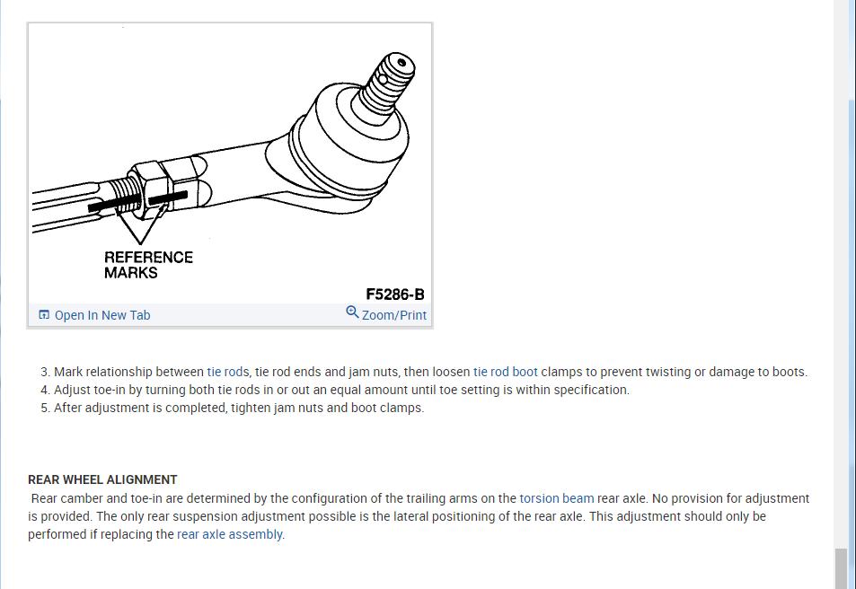 1. But how do I know where the original marks were? I don't see them on the strut mount brackets. How do I know what direction to rotate the brackets to correct the camber misalignment (it says "rotate it by 180 degrees")? But when looking at the camber diagram for this car, I feel that the setting if still in the original position then it maybe at its extreme 1/2 degree positive camber and turning the mount bracket by 180 degrees to the left will give the tire an inner edge wear instead. I don't feel confident as to how to proceed here? The problem was compounded when an alignment mechanic looked at the rear beam visually, and told me "that needs replacement." He didn't speak much English, but I think he was pointing towards the rear axle beam. I didn't notice problem with the rear tires. But anyway, I can't find rear wheel axle beam anywhere online or at any of the auto parts stores. But when I searched for Kia or Mazda parts of the same, I got the part I am looking for (visually). I am not certain how (and where) to order the ford aspire part though.