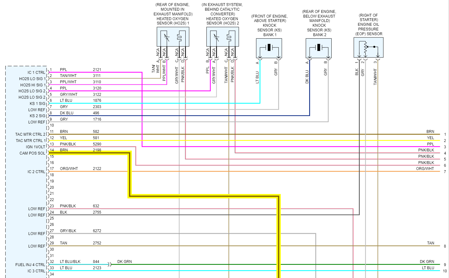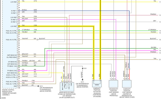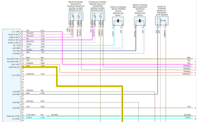 I have been trying to locate the camshaft position CMP actuator solenoid control circuit bank 1 the wiring part. I can't seem to find it, can you please help me?