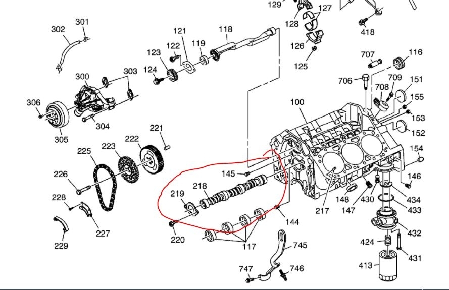 Since this is a pushrod motor, the camshaft is in the center of the motor.