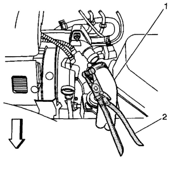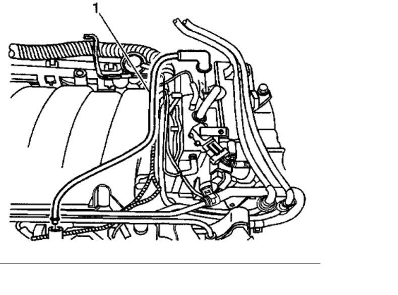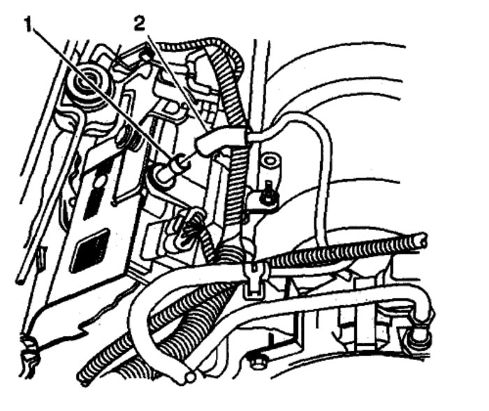 Disconnect the PCV dirty air tube (2) from the camshaft cover.
