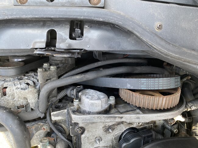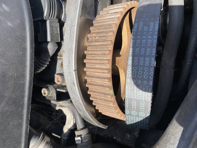 The timing belt is partly on meaning, it’s on the crankshaft but not around the camshaft.