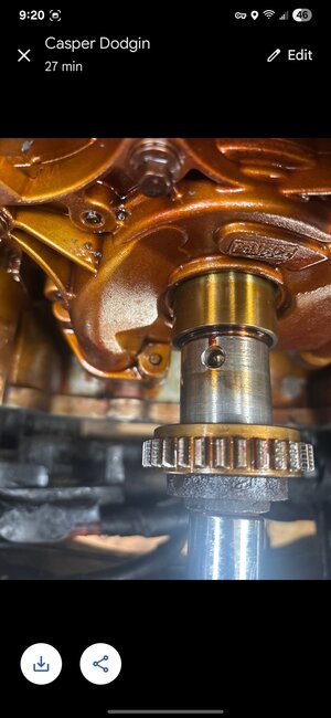 My stepson is working to replace the timing chain and associated parts (via purchased kit) in his 2016 Ford F-150 ecoboost 350 engine with turbo(s). While disassembling the engine for the planned repair he removed the camshaft pulley and found that a pin in the camshaft about a half inch past the pulley was partially broken. He was able to remove the broken pin and has ordered a new pin to be delivered in a couple days.