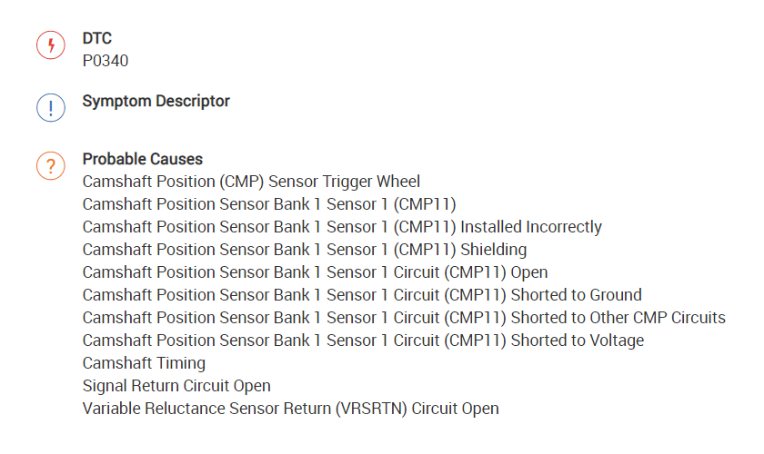 P0340 (for the camshaft sensor)