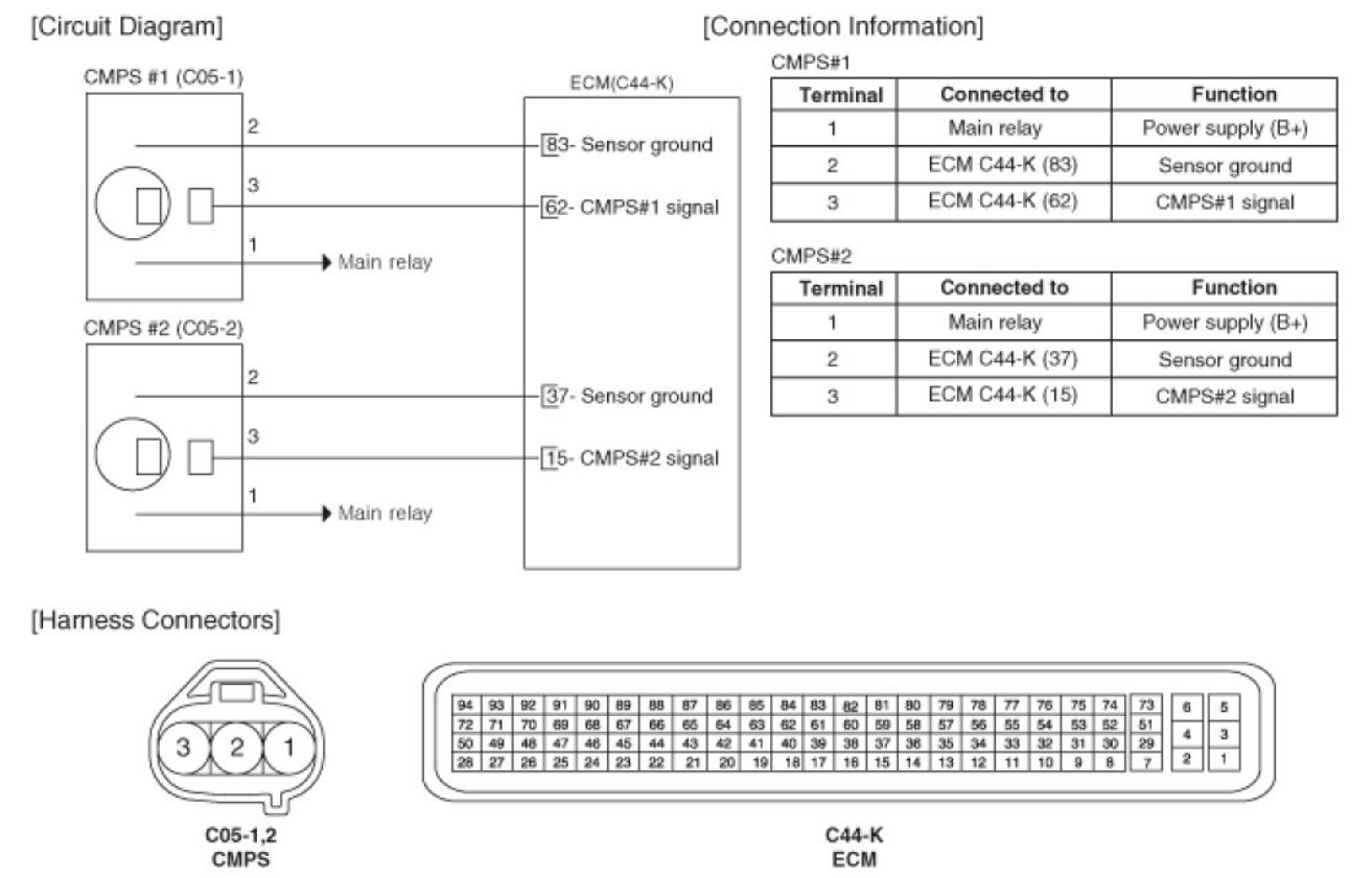 Before fighting to change it might I ask why they are being changed? What are the codes you have or symptoms that are causing you to change them. They rarely fail, the wiring and connections are usually the problem and simply testing those can tell you if the sensor is bad before you replace it. Also some codes will tell you if the sensor is bad simply by the code itself, For instance say the code is for cam crank correlation problems. That wouldn't be a bad sensor as it is telling you the sensor is working by setting that code. Now if it's a camshaft sensor circuit code, then it could be any of the wires or the sensor itself. Testing them isn't that hard though and then if you needed to you could replace it. In this case there are three wires to each sensor. Power is the Orange wire at each sensor, they share that feed from the same fuse but then two separate wires from there. To test that a simple cheap test light will work. You would connect the light to a ground connection and turn the ignition key on, then verify that the Orange wire has power to the connector on both sensors. The light will come on if they have power. Next are the grounds, these use different colors for the two sensors, Sensor one uses a green wire while Sensor 2 uses a White wire with a black stripe. Testing however is the same for both. Connect the test lights clip to a power point like the battery positive post, then with the key on touch the tip to the connector for the Green wire and the White w/black wires in turn. The light should light if the grounds are good. To test the signal output is a bit harder as the sensors are both simple on/off switches that read the small teeth on the reluctor gears attached to the camshaft. Testing them with a test light isn't really possible however you might find the problem is in the power or ground which is the most common issue.