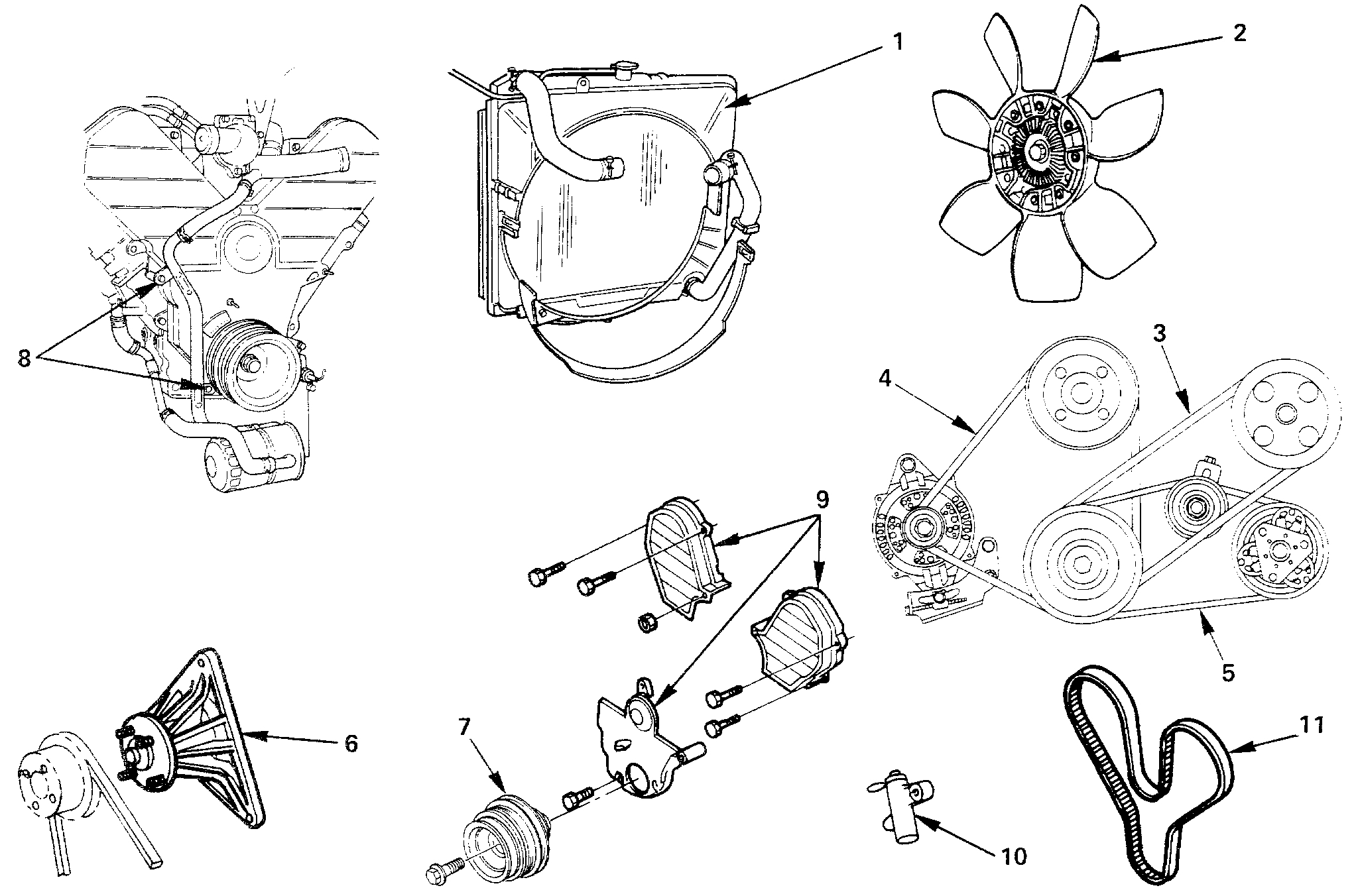 8. Crankshaft pulley; P/S belt