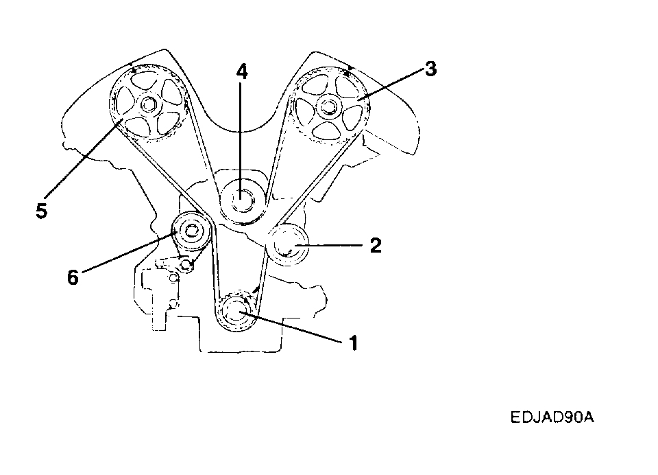 3. Verify that the timing marks of each sprocket are in their specified position.