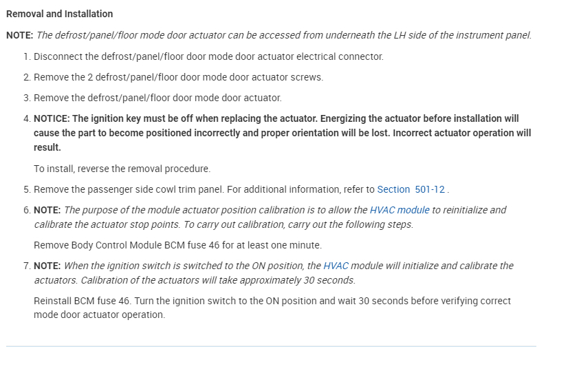 The ignition key must be off when replacing the actuator. Energizing the actuator before installation will cause the part to become positioned incorrectly and proper orientation will be lost. Incorrect actuator operation will result.