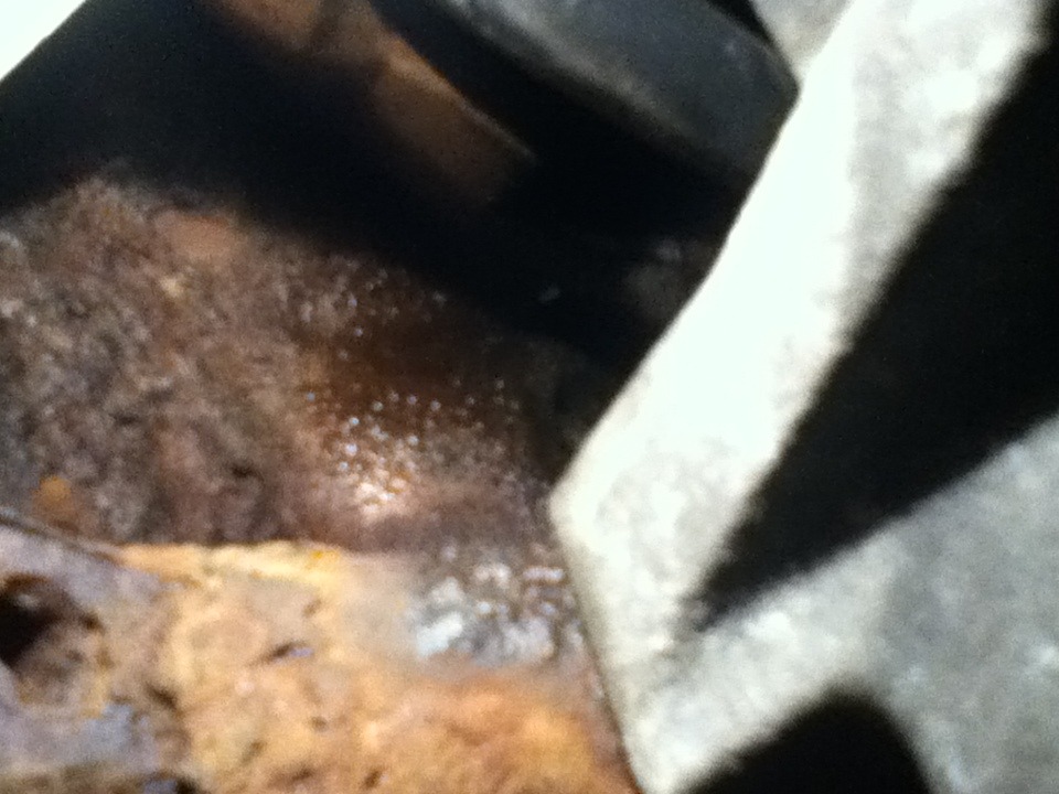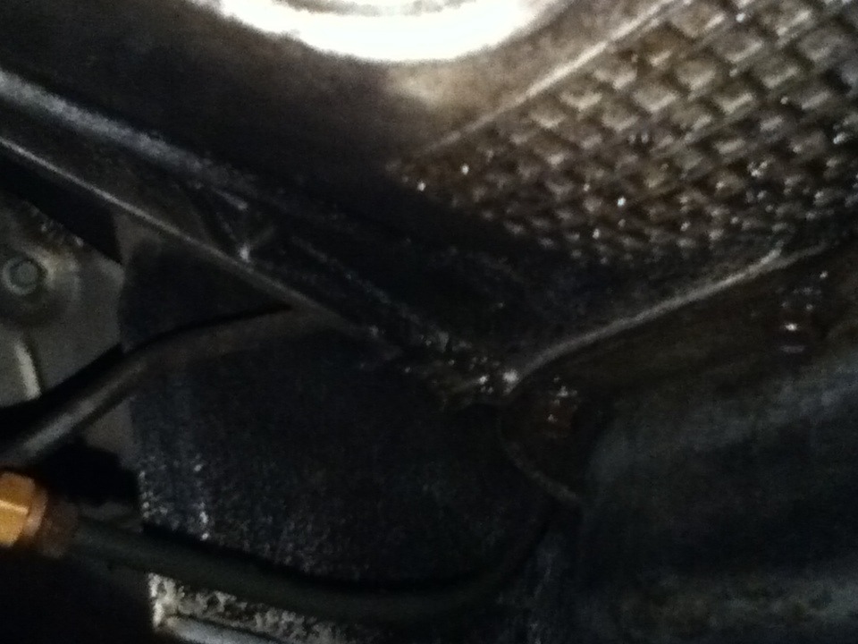 The third picture shows the extent of the oil, covering the bottom of the bellhousing, trans pan, and heat shield.