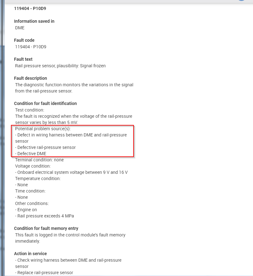 The P10D9 indicates there is less than 5 mv variation sent from the fuel rail pressure sensor. Basically, it appears frozen to the PCM. Did this happen since you replaced it? If it has, I have a feeling the sensor is bad. Other than the sensor, it could be a wiring issue or the DME itself could be bad. Confirm there is no corrosion or damaged pins at the connections.