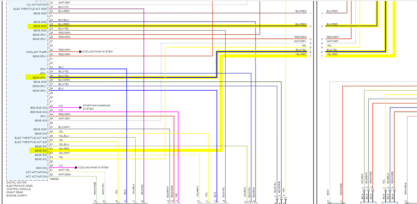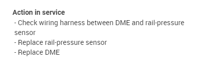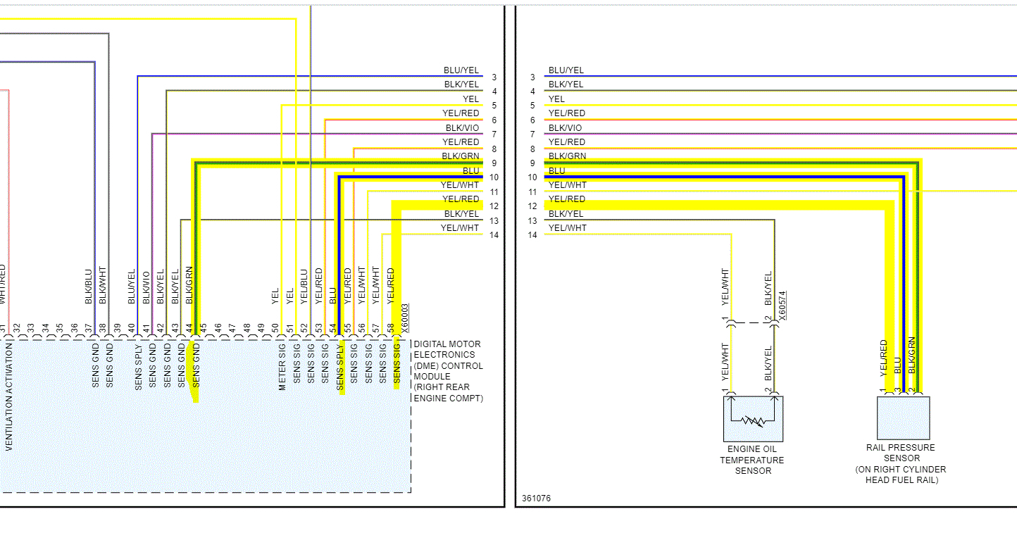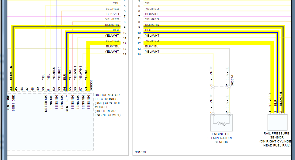 I have attached two pics below. One is for the low pressure fuel sensor (pic 1) and the other is the fuel rail pressure sensor. The schematics show the pin orientation at the DME. I would check to make sure there isn't an issue with the connection.
