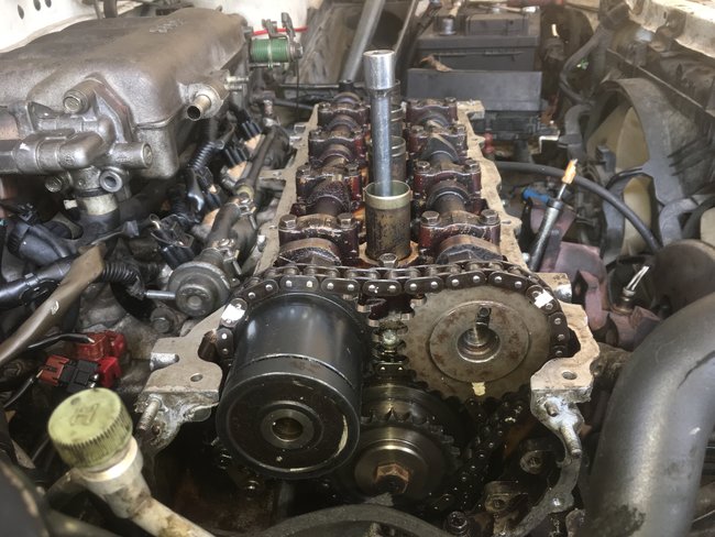 Well if that is ok, you have to start the timing procedure from the start, check that engine is set a TDC, check both cams are set correctly and re check timing chains are exactly as needed, if this is correct then it must work, I feel that one of the timing points is not correct, that is the only way a valve can hit a piston, apart form it being stuck down and you say that is not the case here. I would also ensure that the crank turns full revelation with out the cams fitted, this will ensure all valves are seated and if it stops, there must be a valve stuck part down, or a problem with the crank /piston. Do not take anything for granted as we must ensure every point is covered and checked.