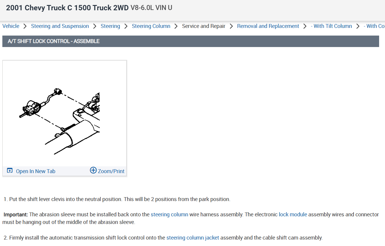 I replaced the ignition solenoid because I couldn't shift out of park. I was having this issue before, and I disconnected the plug that goes into the ignition solenoid, and I was able to shift to get home. So, I replaced the ignition solenoid and that didn't solve the problem. What else should I be looking at?