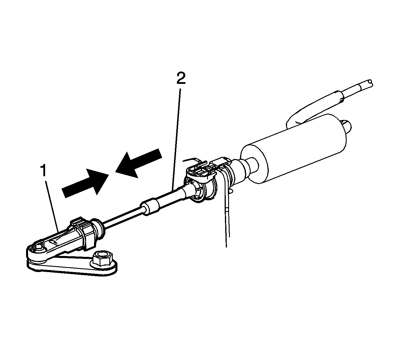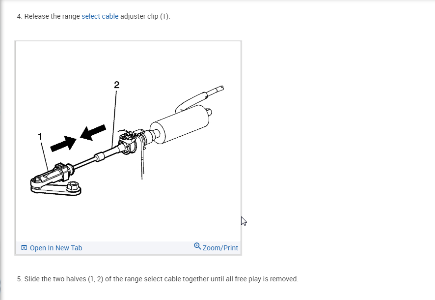 5. Slide the two halves (1, 2) of the range select cable together until all free play is removed.