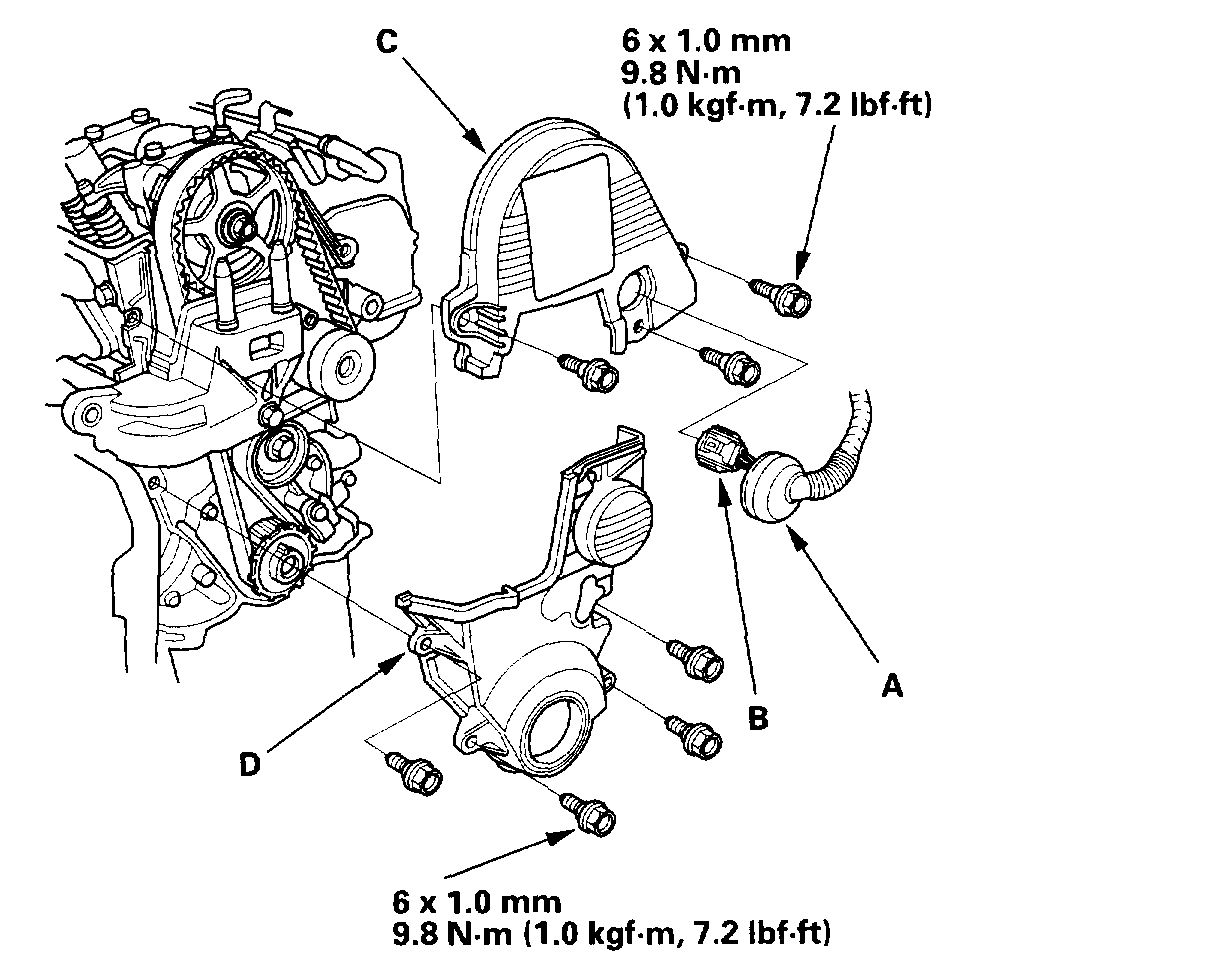 1. Remove the grommet (A) from the upper cover, and disconnect the camshaft position (CMP) (top dead center (TDC)) sensor connector (B).