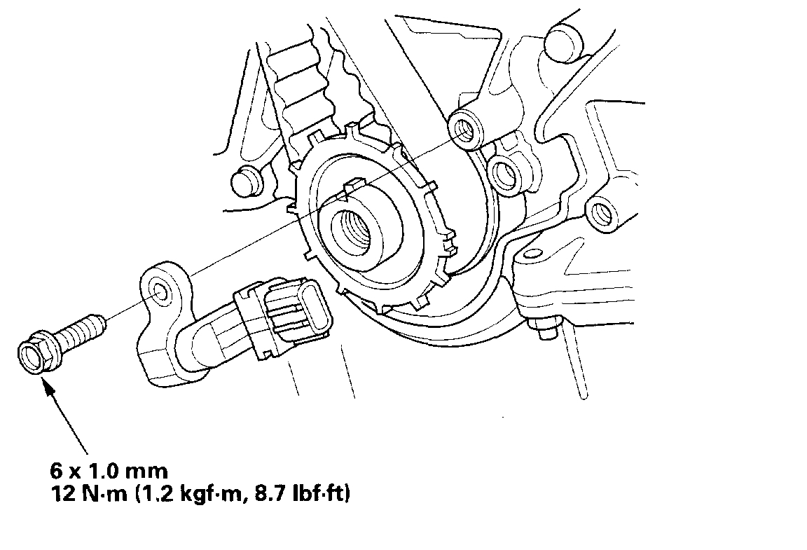3. Disconnect the crankshaft position (CKP) sensor connector, then remove the CKP sensor from the oil pump.