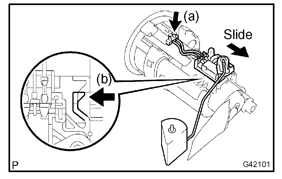 - When the fuel tube joint and fuel suction plate are stuck, pinch the fuel tank tube between fingers, and turn it carefully to release. Disconnect the fuel tank tube.