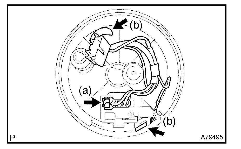 b. Unlock the fuel sender gauge, and slide it to remove.