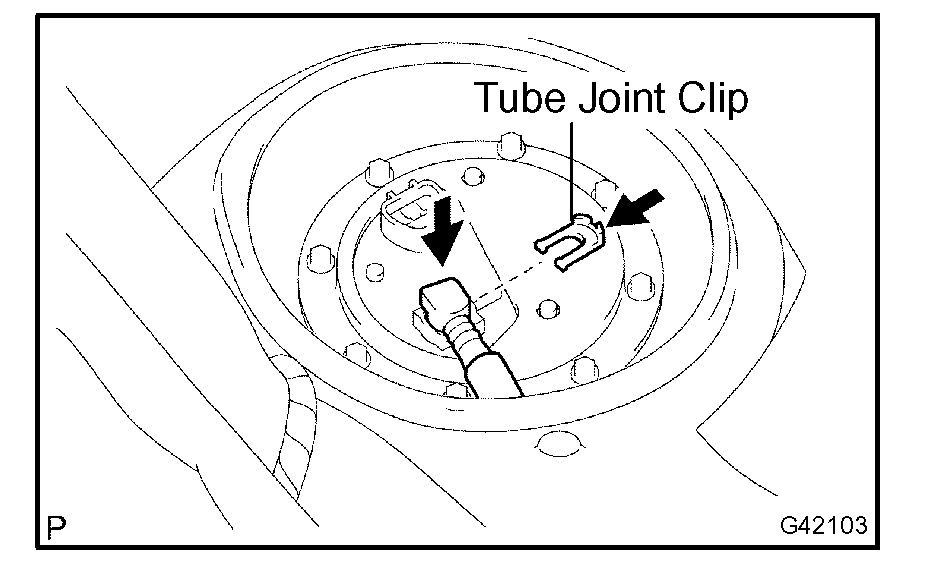 a. Remove the tube joint clip, and pull out the fuel pump tube.