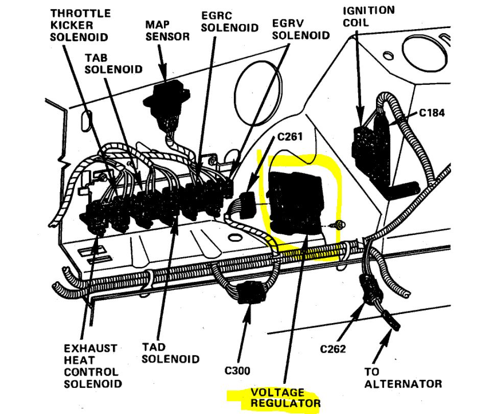 If you look at pic 2, it shows the location of the regulator. It is under the hood on the right side (passenger side) inner fender (fender apron). You may want to locate it and inspect the wiring to it and the connector. Disconnect the battery if you plan to disconnect the regulator.