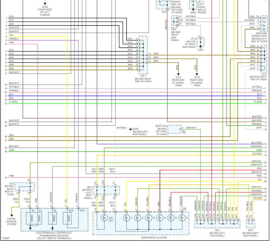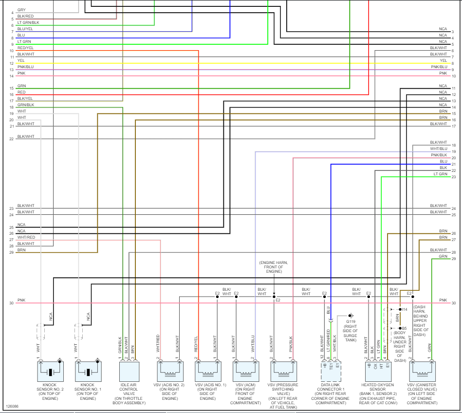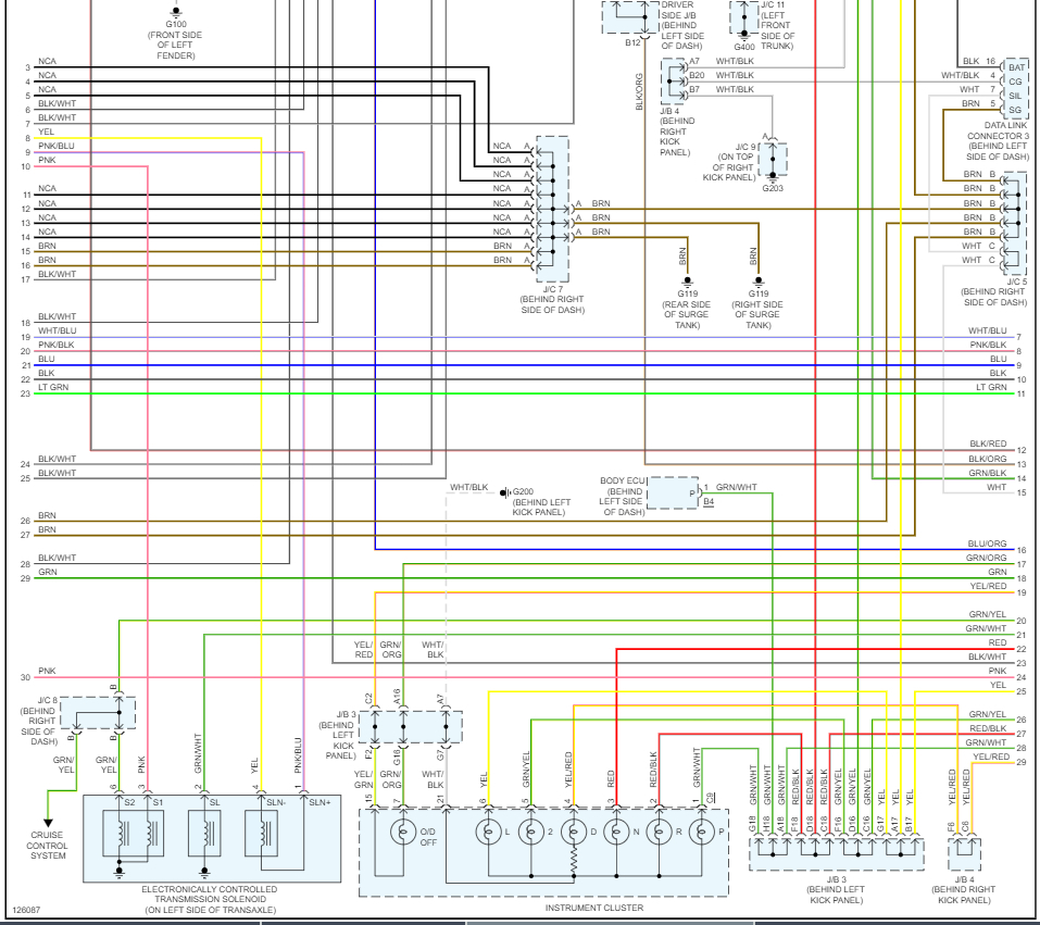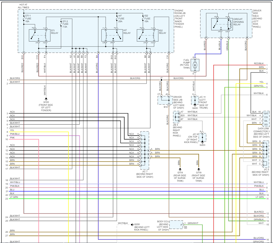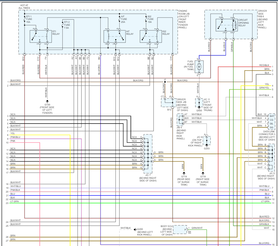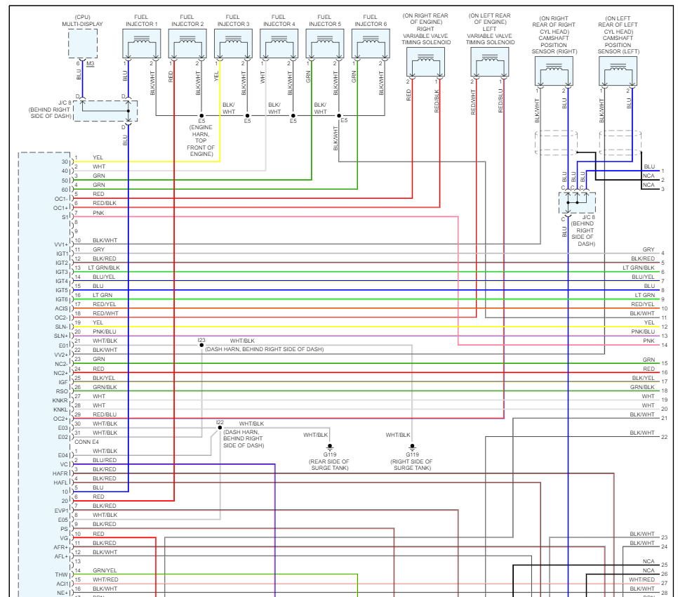I tried to scan for DTC codes, but my scanner wasn't communicating. I checked all fuses, power and ground at obd port, those checked ok. But my scanner isn't compatible to read CAN network. There are only 4 wires intact for the obd2 port.