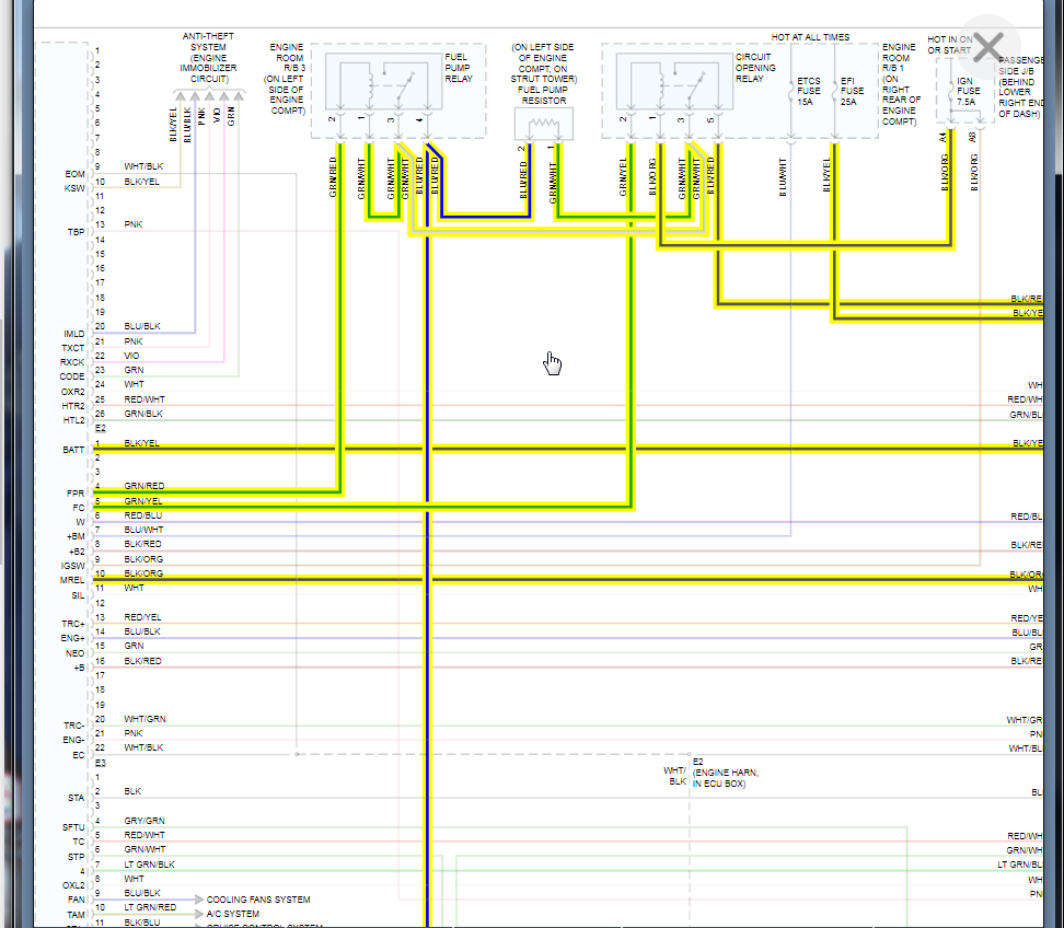 Please see the wiring diagrams below but we need to check these relays and fuses as well.