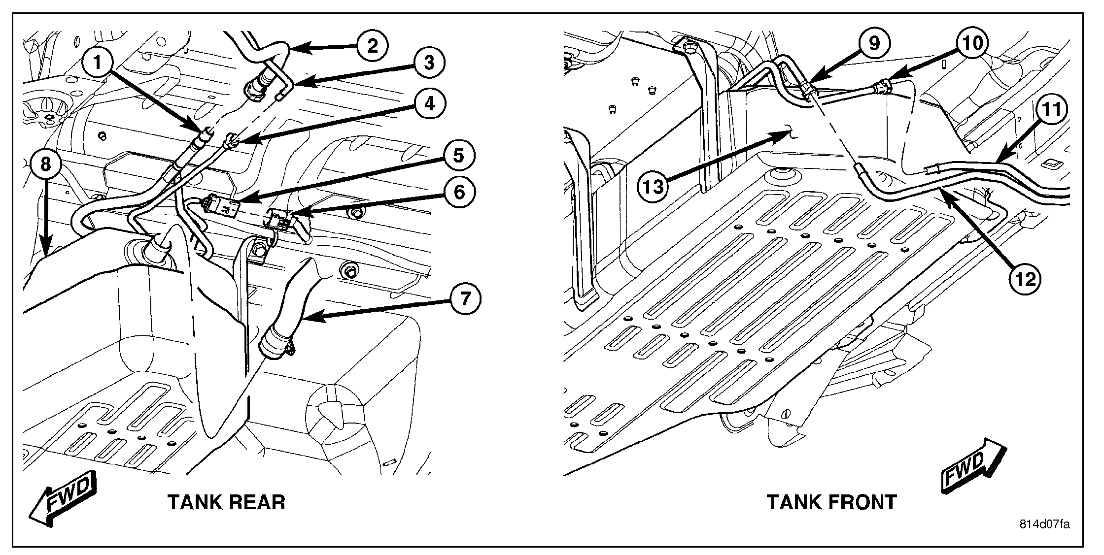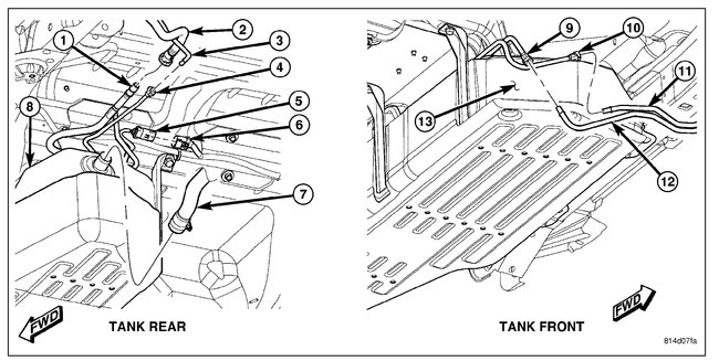 6. Connect EVAP, ORVR, fuel and NVLD lines at front and rear of tank.