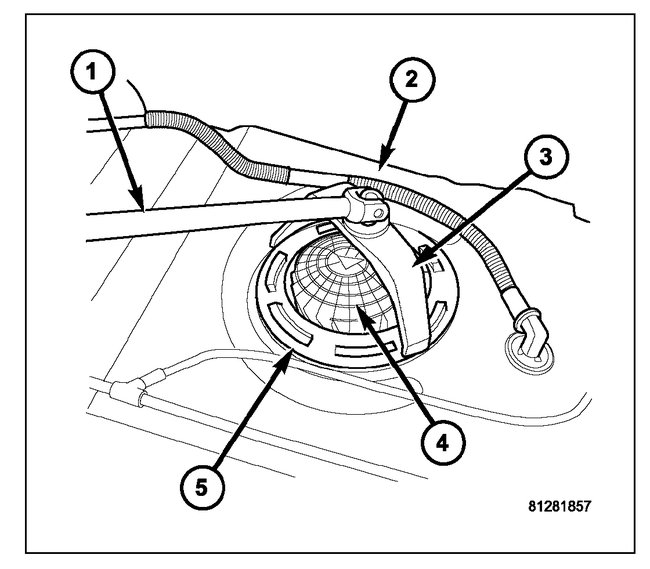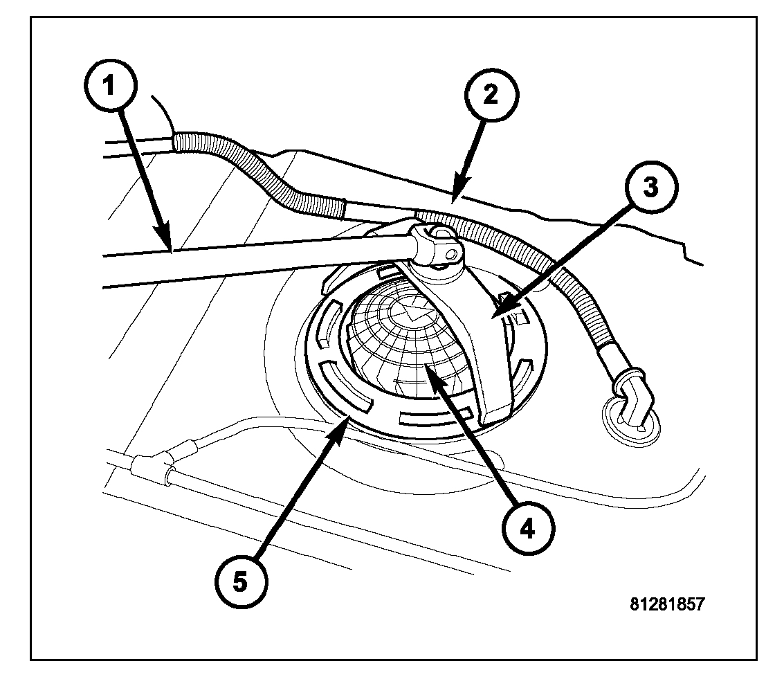 CAUTION: Whenever the fuel pump module is serviced, the rubber seal (gasket) must be replaced.