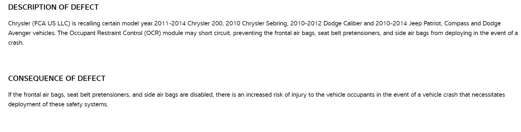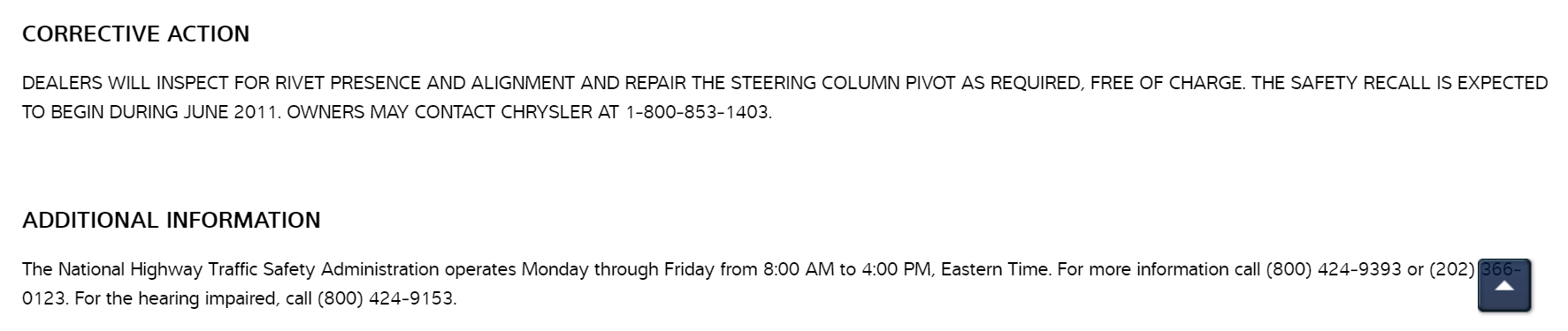 If you do bring it to a dealership, I wanted to advise you on two recalls for this car.