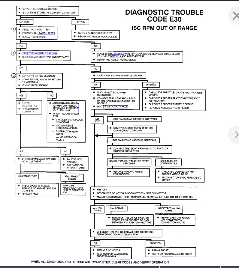 I attached the flow test that we need to follow to determine if it leads us to another issue or if the ISC Motor, PCM, or something else needs to be replaced.