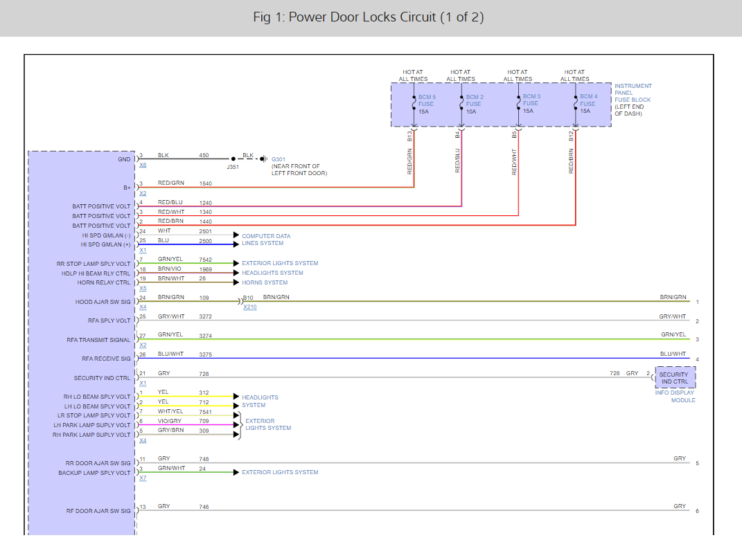 This can be the BCM, instrument cluster, remote control lock receiver or a bad fuse #BCM 2, 3, 4, and 5. So let's check the fuses first here is a guide to help and the fuse locations in the images below I have also included the wiring diagrams for the lock system so you can see how it works.