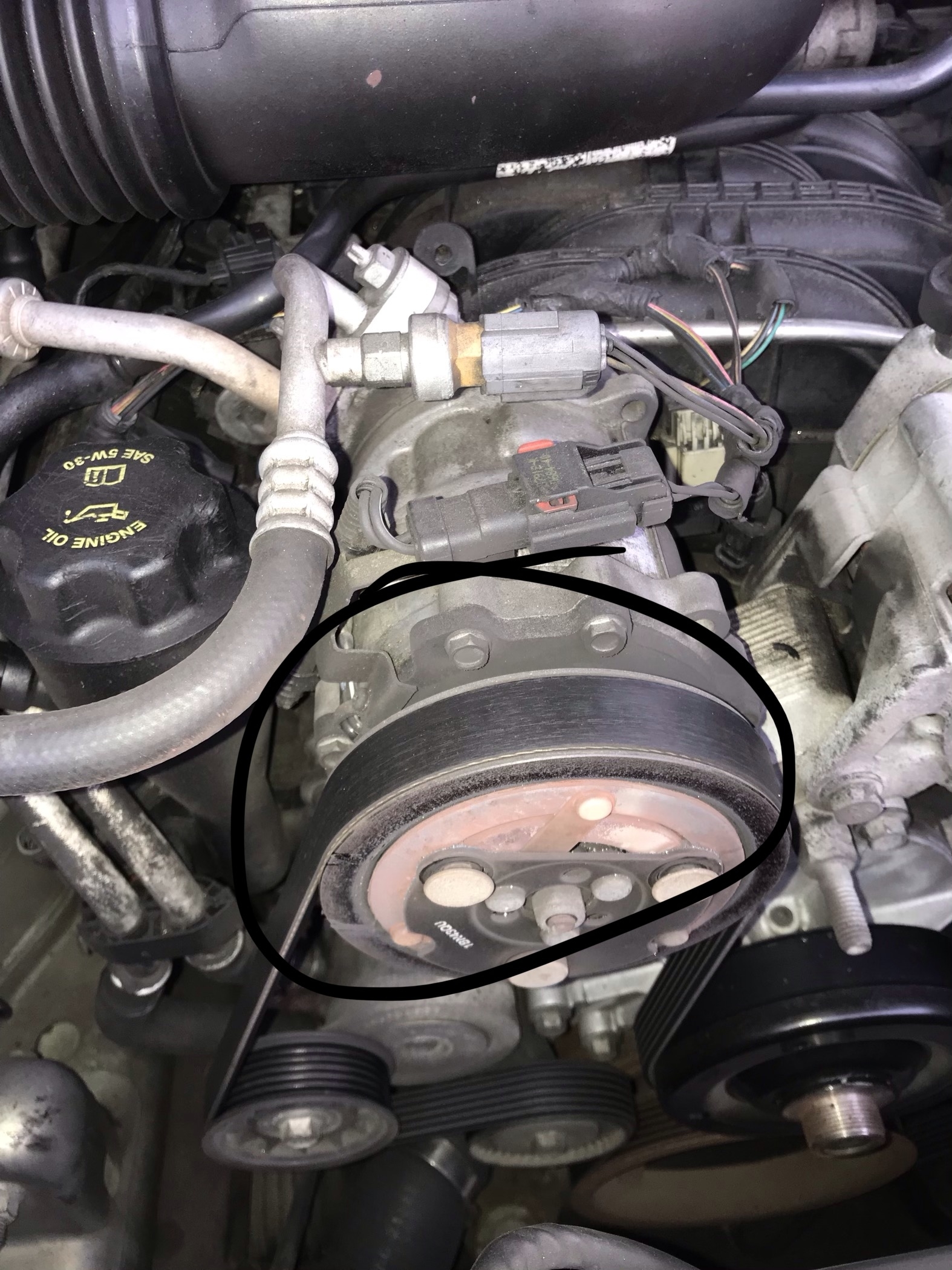 When the engine is on, the car is making weird noises. Sounds like the noise is coming out of the AC. When I turn the AC on, the sound is not as bad, but the AC smells like chemicals.