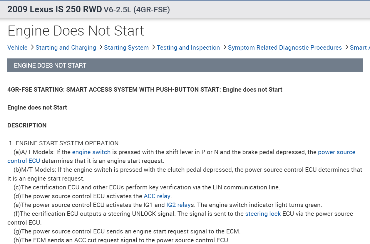 About two months ago I went out one morning to crank my car and it would not crank, it is a push start. I would put my foot on the brake and the light on the push button would turn green and all the lights on the dash, the radio, the head and tail lights all work fine, but the car itself will not crank and it will not even turn over. Then it got to the point it would crank once a day but would shut off immediately after cranking and would not crank and would not turn over no more after that. We have tested the battery and starter both are fine. I replaced the alternator. We checked all the fuses none are blown. We replaced the starter relay and the fuel pump relay. Now we are just stuck on what it could be! Thanks in advanced!