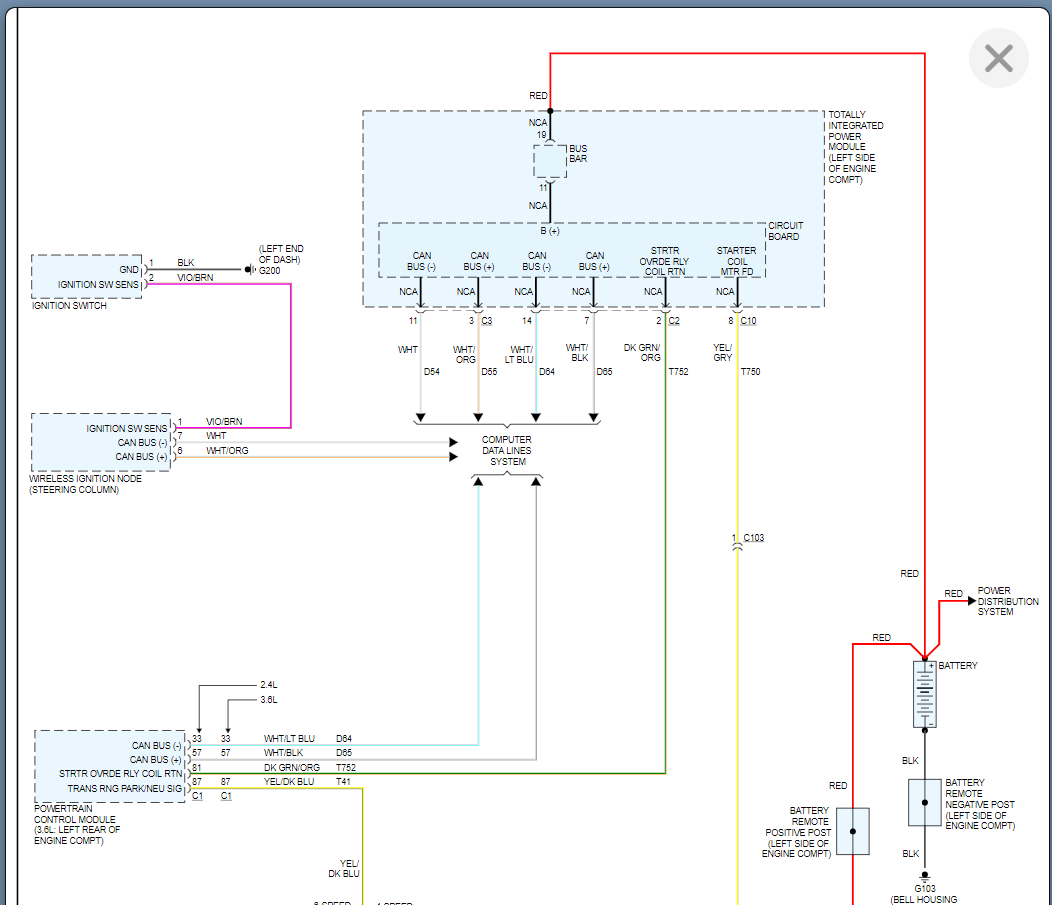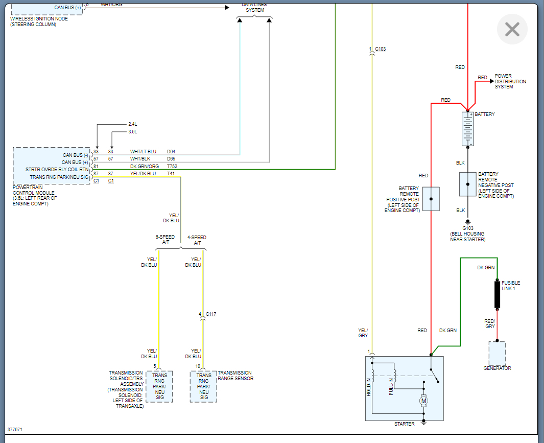 Below you will find the wiring diagram for this. We need to test the voltage at the starter. If there is no voltage then we need to jump over to the PCM and check for a signal from the transmission range sensor.