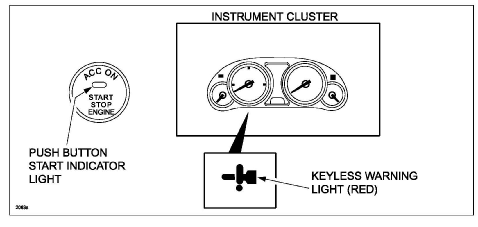 If the vehicle goes into fail-safe mode, the red keyless warning light and the red push button start indicator light come on together. For more details of fail-safe mode, refer to Service Bulletin 09-006/09 "FAIL-SAFE MODE FOR KEYLESS CONTROL MODULE AND STEERING LOCK UNIT".