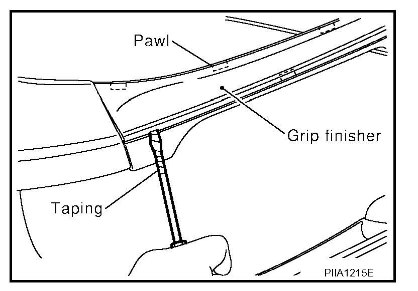 2. Insert taping flat-bladed screw driver into edge portion, disconnect pawls, and remove grip finisher.