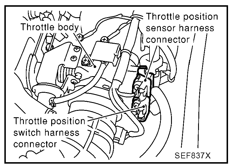 7. Disconnect throttle position sensor harness connector (brown), then reconnect it within 5 seconds.