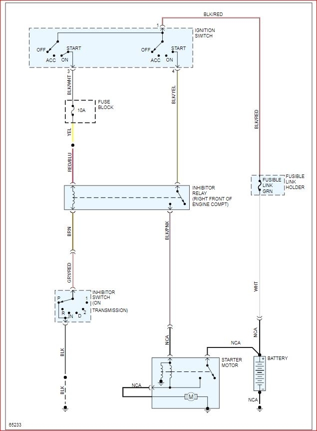 I am thinking you have two issues. That is good that the relay and fuse are good with the inhibitor but the switch itself could be an issue which is on the transmission. Have you tried putting it in Neutral and trying to start? I included a little more modern wiring diagram that shows the power flow a little better. The inhibitor switch can prevent the starter from engaging but I don't think it will prevent the distributor from delivering the spark.